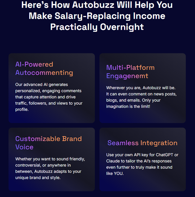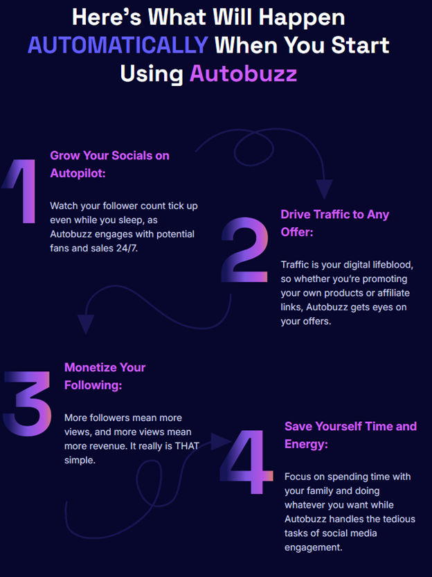 âś… 100% Done-For-You Automation: Set it and forget it. AutoBuzz continuously creates and posts viral content that drives clicks and traffic.