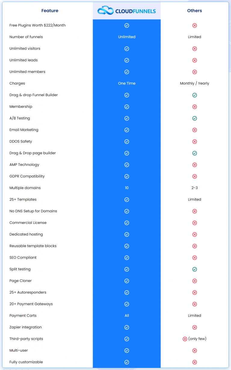 | Feature | CloudFunnels | ClickFunnels | Groove |