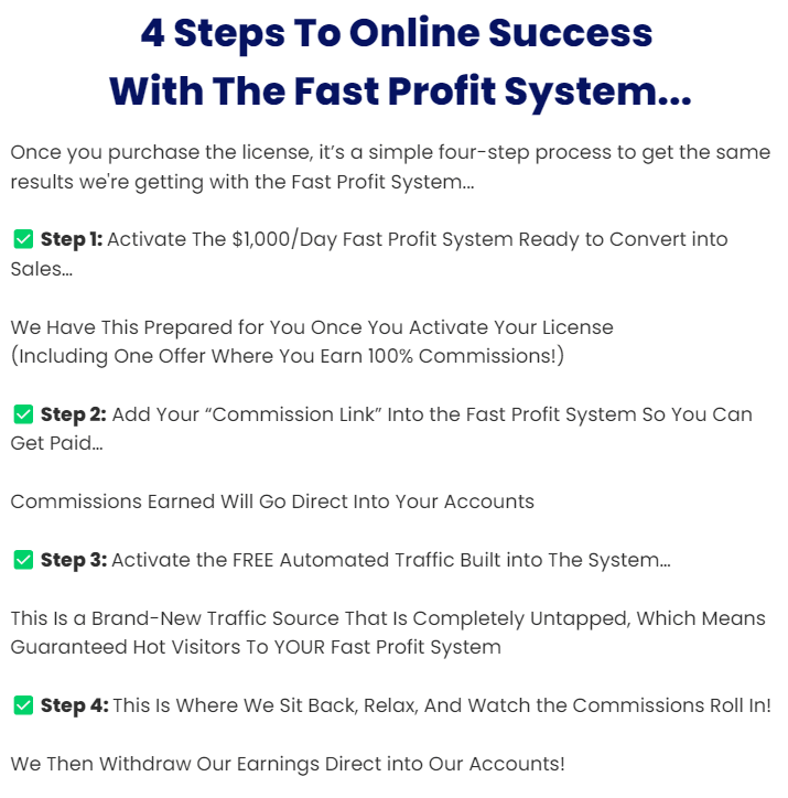 Using the Fast Profit System is simple and follows four easy steps: