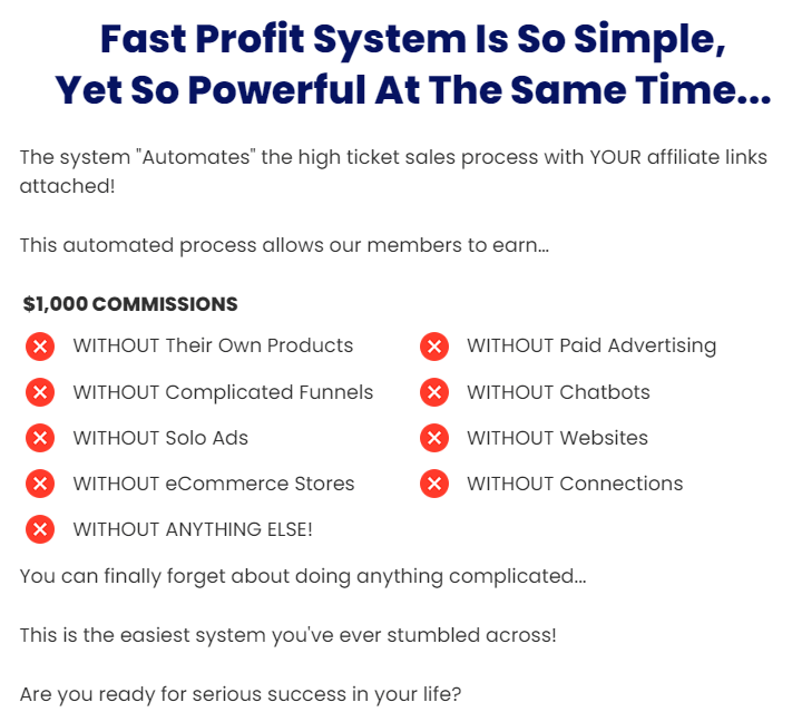 If you’re tired of low-ticket commissions and endless manual effort, the Fast Profit System provides a proven, automated solution for earning high-ticket affiliate commissions with minimal effort.