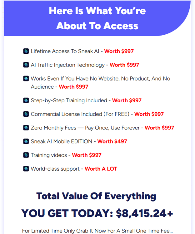 For just $17 one-time, this is one of the smartest and most monetizable AI shortcuts available in 2025. Whether you want to drive affiliate commissions, promote a local biz, or build an agency around client traffic—Sneak AI has the tools and simplicity to make it happen.